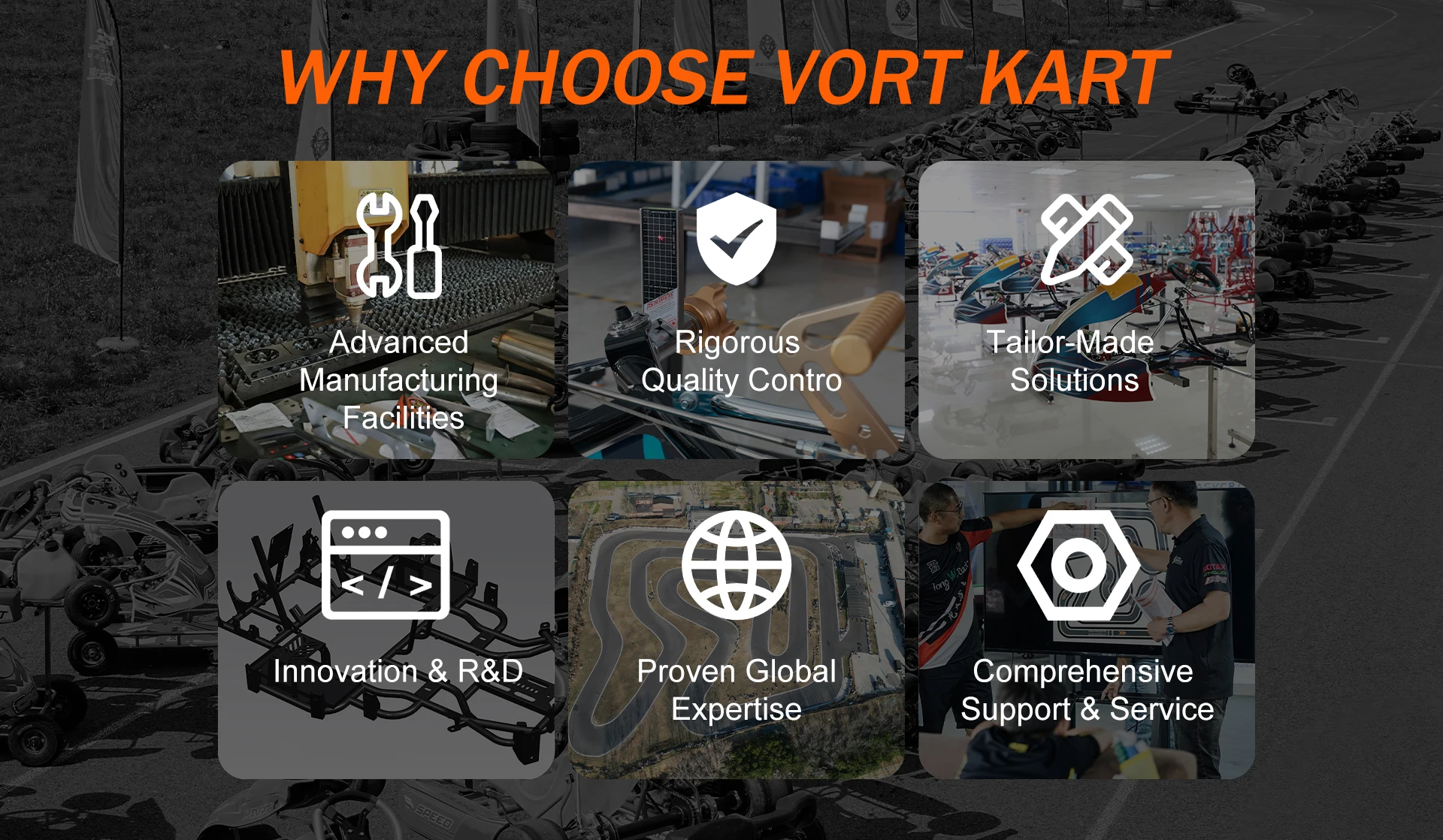 Vortkart is the flagship brand of Zhengzhou Zhuoyuan Amusement Equipment Co., Ltd, a comprehensive leader company in China karting industry. Since its establishment, Vortkart has been focusing on the R&D, manufacturing, race and event operation of karts. We pays attention to details, from design to production of karts, every process is carefully planned and strictly controlled. We develop and produce the core components of karts independently to ensure the excellent performance and reliability of products . Vortkart is committed to bringing customers the ultimate racing experience, we offer a large variety of kart models and service to meet the needs of different customers.